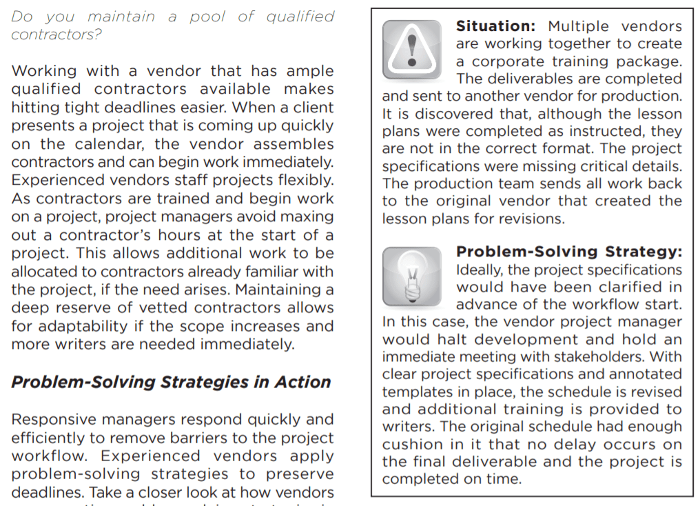 Since adherence to deadlines is at the crux of any content development project, timeliness is arguably the most important quality a good project manager should have. The proven ability to set and meet deadlines is a must. Be sure your candidate can show you multiple examples of providing quality work on or before a set deadline.